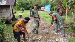 Bakti Nyata Jelang HUT Ke-80 TNI, Kodim 1710/Mimika Perbaiki Jalan Kampung