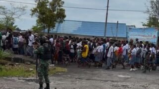 Kodim 1715/Yahukimo Amankan Demo Front Aliansi Pelajar Yahukimo Tolak Program Makan Bergizi