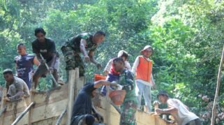 Semangat Warga Desa Malbufa Dalam Pengecoran Bak Air Program TMMD Ke-123 Kodim 1510/Sula