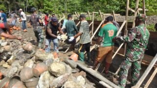 Beginilah Semangat Satgas TMMD 123 Kodim 1510/Sula Dalam Menyelesaikan Pengerjaan Sasaran Fisik