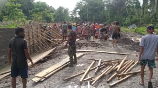 Manunggal Dengan Rakyat, Satgas TMMD 123 Kodim 1510/Sula Lanjutkan Sasaran Pembangunan Talud Sepanjang 200 meter