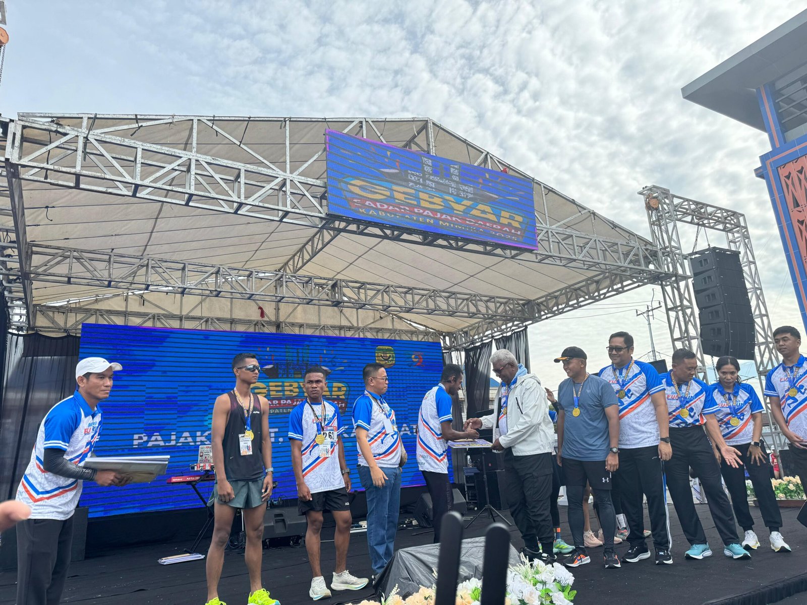 Acara Fun Run berlangsung meriah dengan suasana penuh semangat. Selain berlari bersama, para peserta juga menikmati hiburan, pembagian doorprize menarik, serta kampanye interaktif mengenai pelayanan pajak daerah. (Pendim 1710/Mimika)