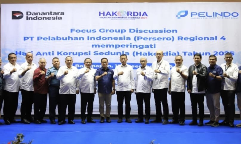 BALIKPAPAN – PT Pelabuhan Indonesia (Pelindo) Regional 4 dalam rangka memperingati Hari Anti Korupsi Sedunia (Hakordia) Tahun 2025 menggelar Focus Group Discussion (FGD) bertema “Memaksimalkan Penerimaan Negara Bukan Pajak (PNBP) pada Jasa Kepelabuhanan yang Diusahakan oleh PT Pelindo (Persero)” di Balikpapan, Senin (15/12/2025).