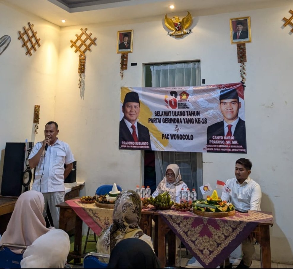 Surabaya — Ketua dan Pengurus PAC Serta Anak Ranting Partai Gerindra, Kecamatan Wonocolo Surabaya Jawa Timur menyampaikan ucapan Dirgahayu ke-18 Partai Gerakan Indonesia Raya (Gerindra) yang diperingati pada 6 Februari 2026.