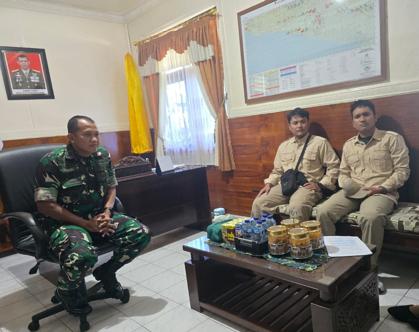 Timika – Dandim 1710/Mimika, Letkol Inf M. Slamet Wijaya, S. Sos., M. Han., M.A. menerima audiensi pegawai Badan Gizi Nasional (BGN) Sarjana Penggerak Pembangunan Indonesia (SPPI) dan Yayasan Sehati Sebangsa Indonesia (YSSI) di Makodim 1710/Mimika, jalan Agimuga Mile 32, Distrik Kuala Kencana, Kab. Mimika. Selasa (04/03/2025).