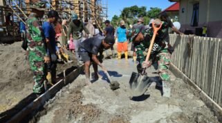 Sinergi TNI dan Rakyat, Satgas TMMD Kodim 1505/Tidore Bersama Warga Cor Tiang Masjid