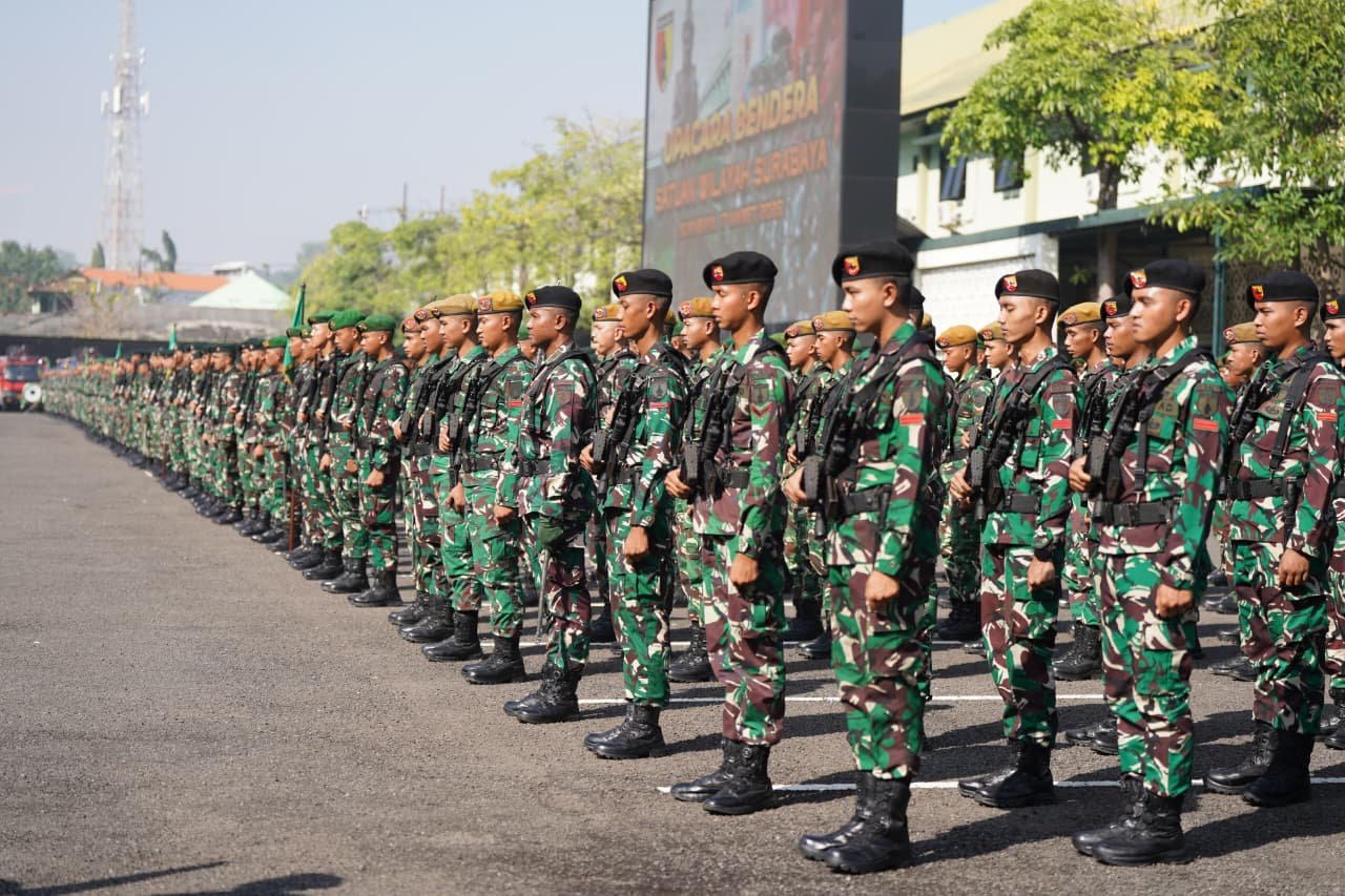 SURABAYA — Kodam V/Brawijaya menggelar Upacara Bendera 17-an di Lapangan Ahmad Yani Makodam V/Brawijaya sebagai wadah penguatan komitmen dan profesionalisme prajurit serta pegawai ASN, Selasa (17/03/2026).