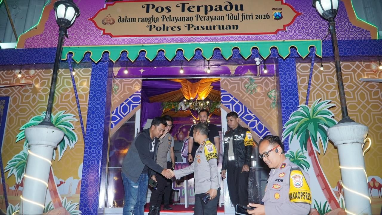 PASURUAN – Kapolres Pasuruan AKBP Harto Agung Cahyono menekankan pentingnya kewaspadaan dan pelayanan humanis kepada petugas saat memantau arus mudik menjelang Hari Raya Idul Fitri 1447 H di Pos Terpadu Simpang 4 Taman Dayu, Pandaan, Kamis (19/3/2026) malam.