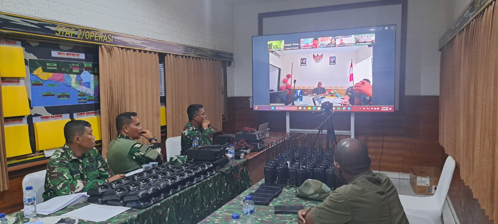 Timika – Kodim 1710/Mimika mengikuti kegiatan video conference (vicon) pengecekan materil yang diselenggarakan oleh Komlekdam XVII/Cenderawasih, bertempat di Makodim 1710/Mimika, Rabu (11/2/2026).