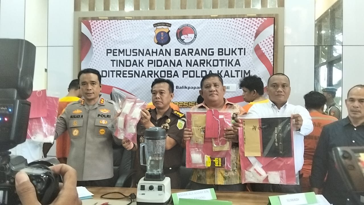 Balikpapan – Dalam rangka mendukung Program Asta Cita Presiden RI dalam memberantas Narkoba, Polda Kaltim melalui Direktorat Resnarkoba menggelar Pemusnahan Barang Bukti Narkotika jenis sabu seberat 488,9 Gram Sabu serta 154 butir Pil Ekstasi bertempat di ruang Rapat Direktorat Reserse Narkoba Polda Kaltim, Kamis (06/02/2025).