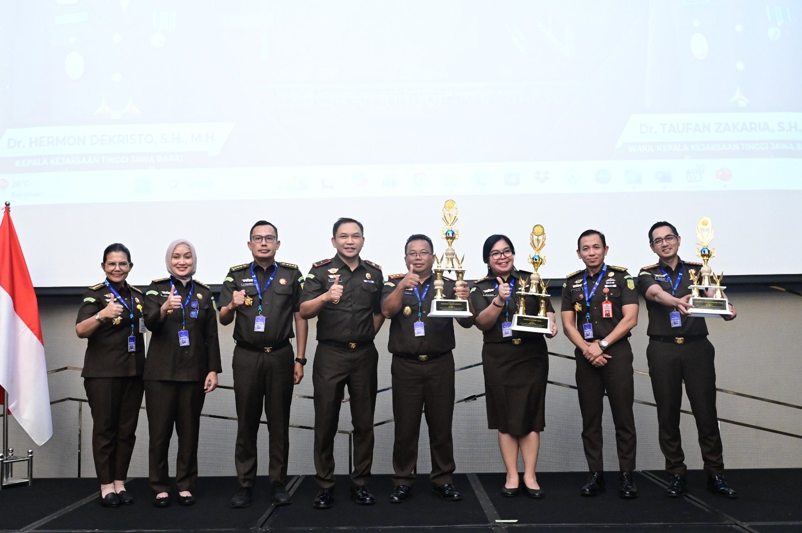 Kejati Jabar memberikan penghargaan apresiasi untuk Kejari terbaik dalam satu tahun ini sebagai juara umum yaitu: