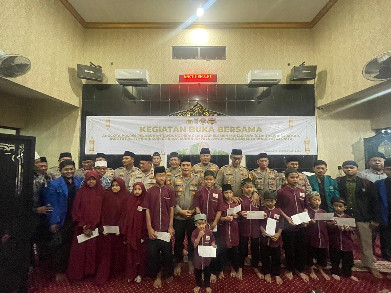 Bertempat di Masjid Al-Hidayah Mapolres Pelabuhan Tanjung Perak, kegiatan tersebut berlangsung khidmat. Mengusung tema “Merajut Kebersamaan di Bulan Ramadan, Silaturahmi dan Buka Bersama Insan Pers, Mahasiswa, serta Anak Yatim”, acara ini menjadi momentum penguatan sinergi lintas elemen.
