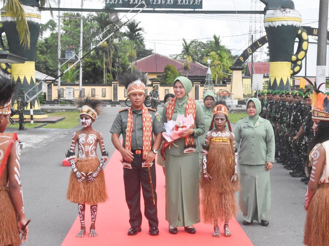 Timika – Kedatangan Komandan Kodim 1710/Mimika yang baru, Letkol Inf Redi Dwi Yuda Kurniawan, S.I.P., didampingi Ketua Persit Kartika Chandra Kirana Cabang XXXV Kodim 1710/Mimika, Ny. Redi Dwi Yuda Kurniawan, disambut dengan prosesi tarian adat sebagai bentuk penghormatan dan penerimaan warga baru. Kegiatan tersebut berlangsung di Makodim 1710/Mimika, Selasa (23/12/2025).