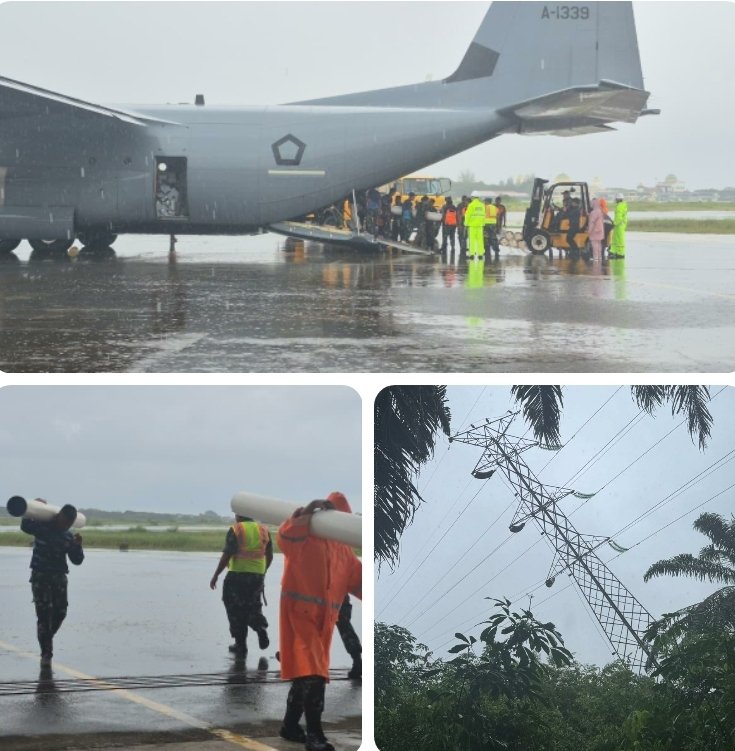 Sebagai langkah percepatan pemulihan, TNI mengoperasikan pesawat Hercules untuk mengangkut materiel tower emergensi bagi pemulihan kelistrikan Aceh. Kloter pertama diberangkatkan pada 27 November 2025 pukul 08.20 WIB dan dijadwalkan tiba di Aceh pukul 11.44 WIB, menjadi tahap awal pengiriman logistik vital yang dibutuhkan dalam proses penegakan kembali jaringan transmisi.